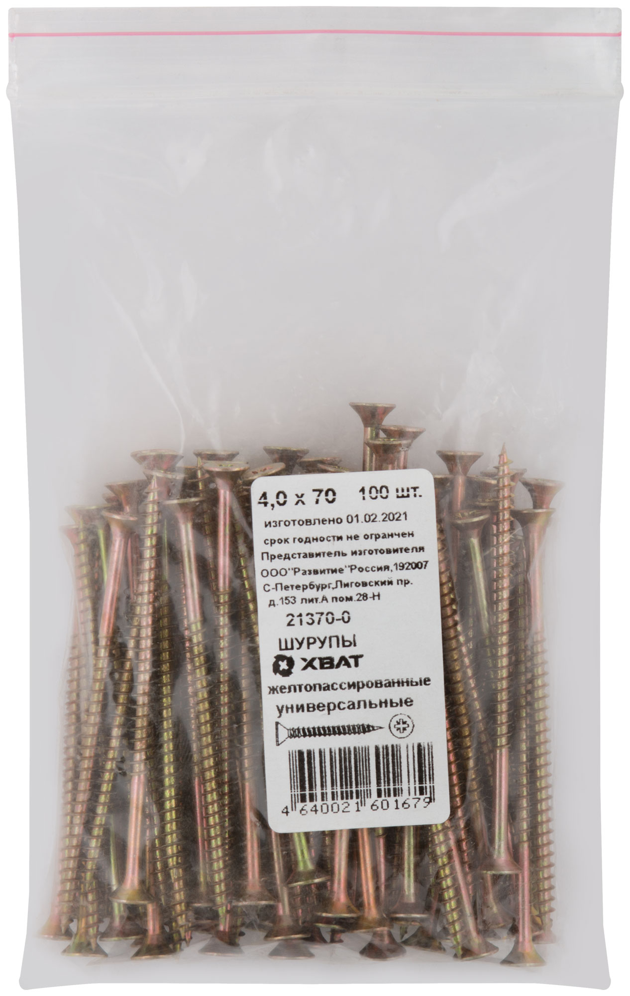 Шурупы желтопассированные, универсальные 4 х 70 100 шт Фасовка