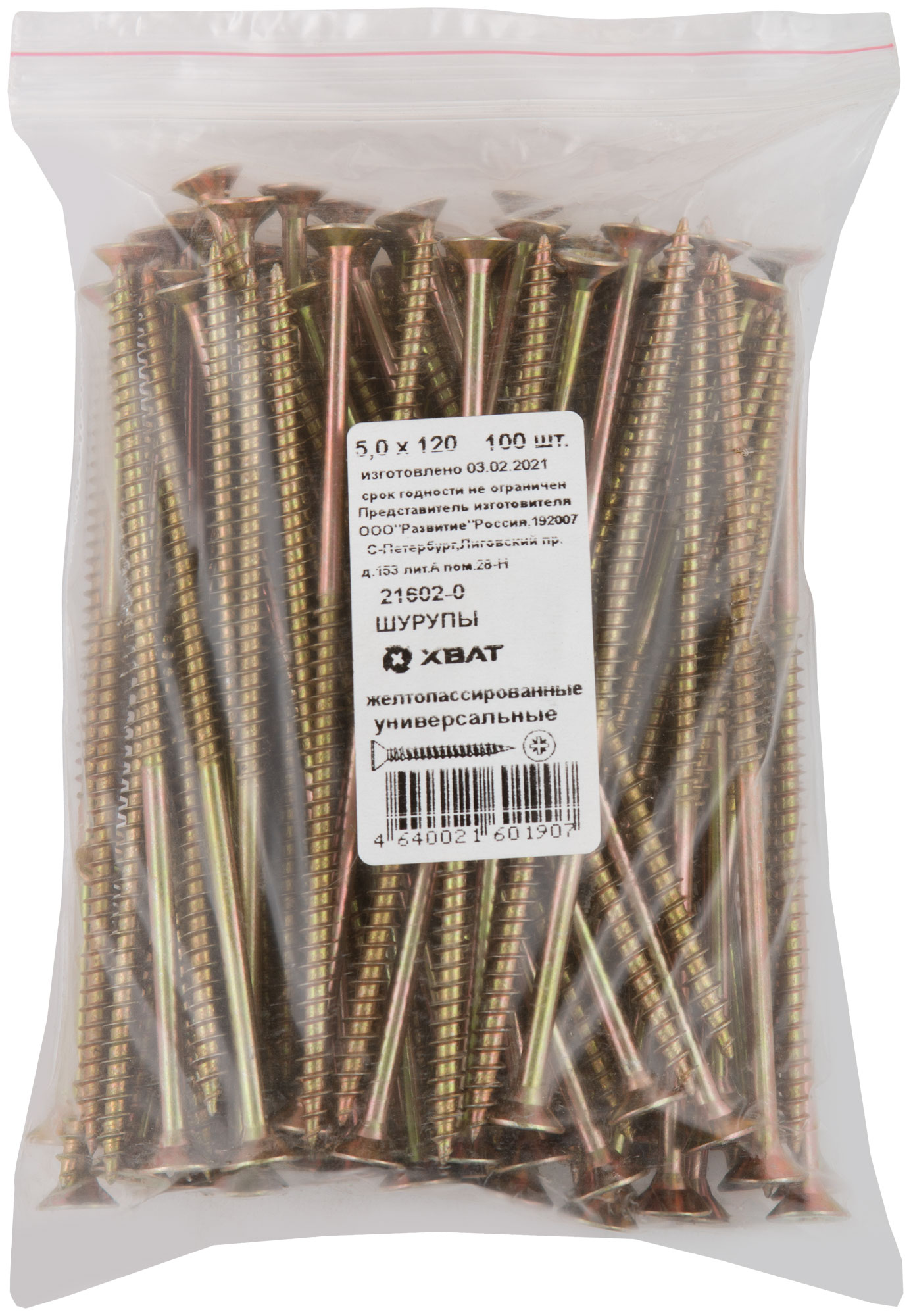 Шурупы желтопассированные, универсальные 5 х 120 100 шт Фасовка