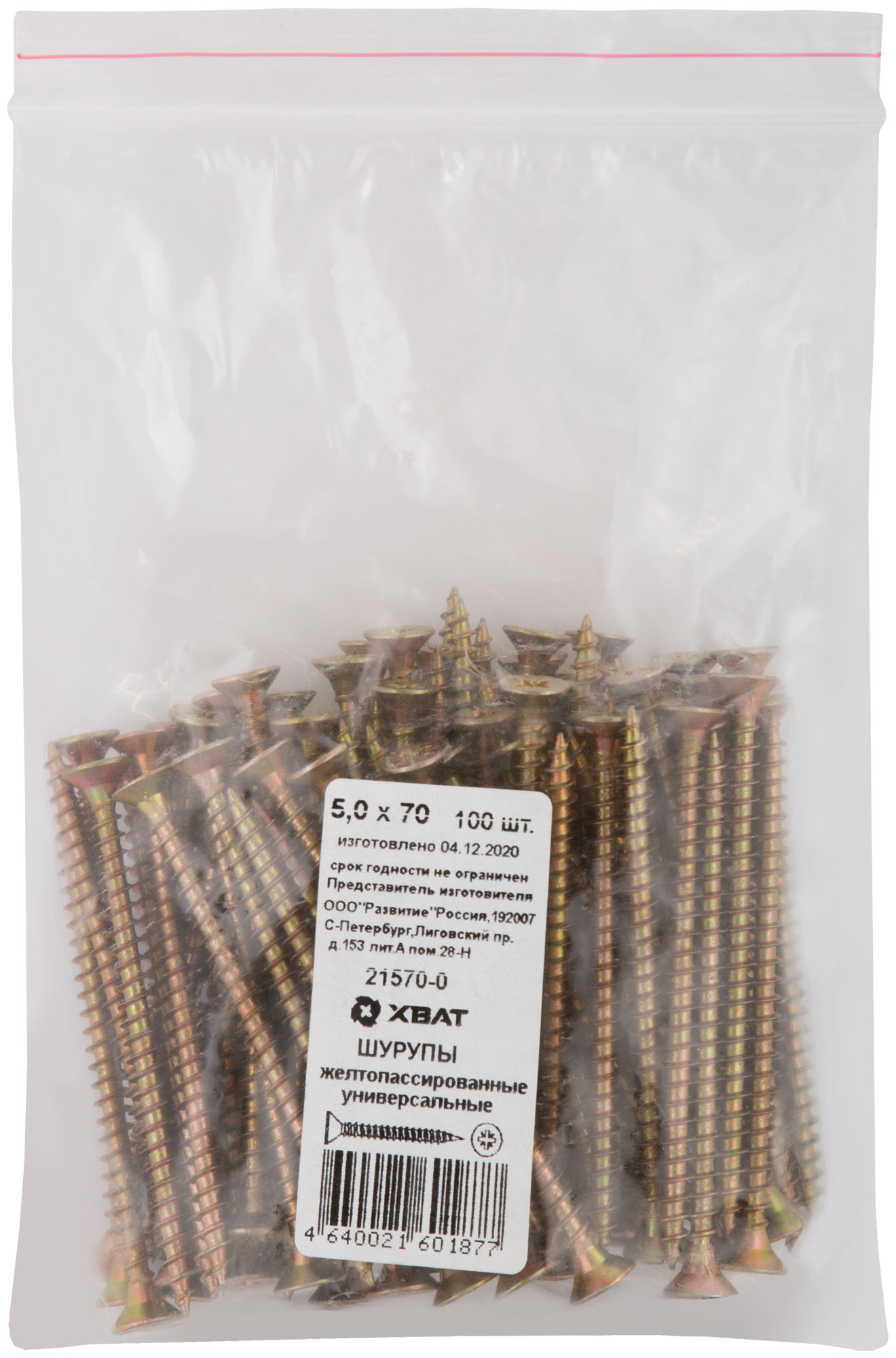 Шурупы желтопассированные, универсальные 5 х 70 100 шт Фасовка