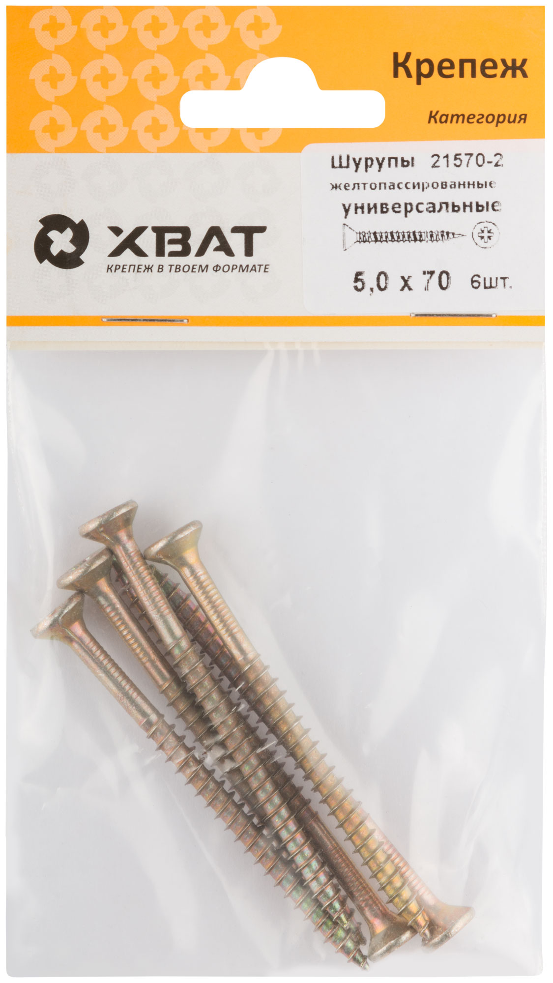 Шурупы желтопассированные, универсальные 5 х 70 ( фасовка 6 шт.)
