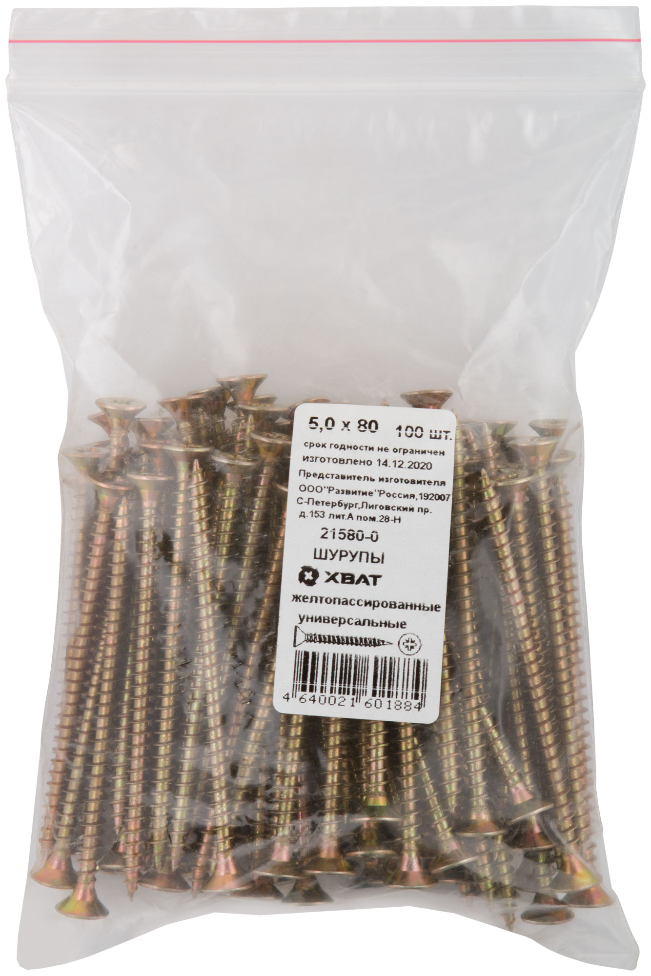 Шурупы желтопассированные, универсальные 5 х 80 100 шт Фасовка