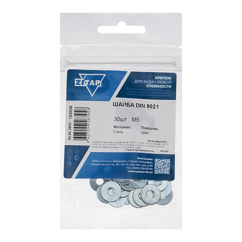 Шайба кузовная М5 DIN 9021 цинк. (пакет) (уп.30шт) Tech-Krep/Zitar 103036