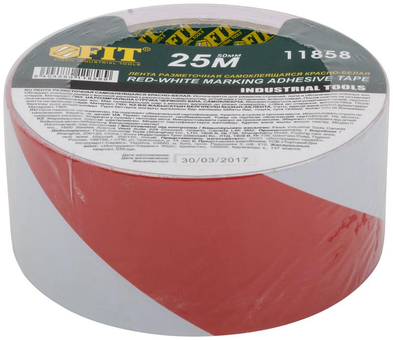 Лента разметочная клейкая 50ммх25м красн.-бел. FIT 11858