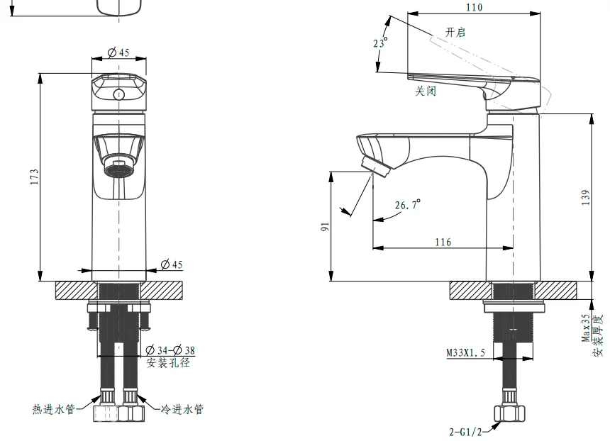 Смеситель для раковины ARROW AG4127CP, хром