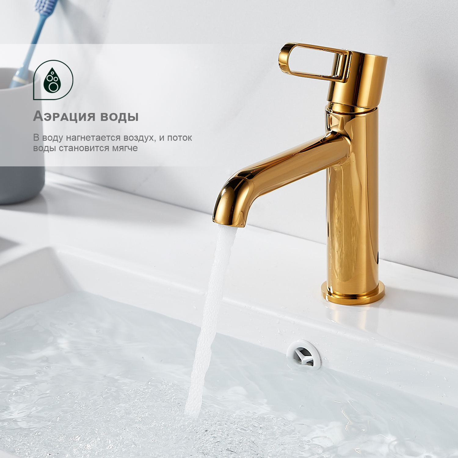 Смеситель для раковины Splenka S03.10.23, золото