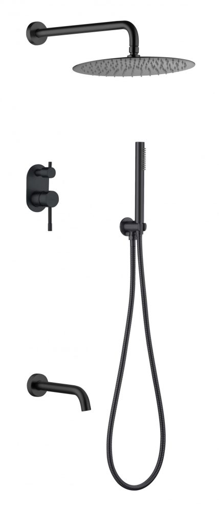 Смеситель встроенный + верхний+ ручной душ, Uno. Black с изливом