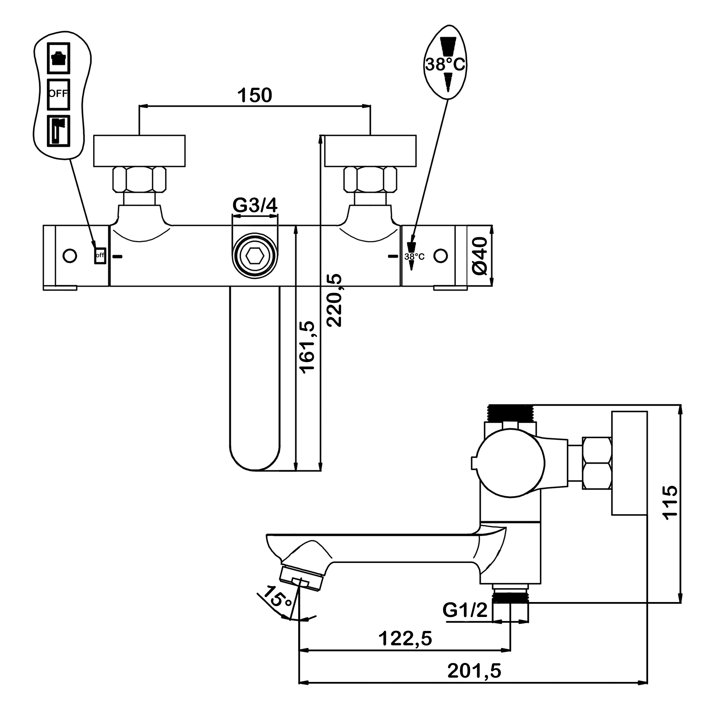 - термостатический ограничитель температуры до 38 градусов;<br>