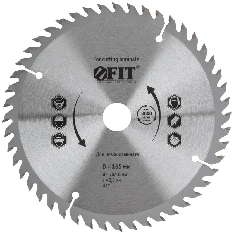 Диск пильный для циркулярных пил по ламинату 165х20/16х48T FIT 37772