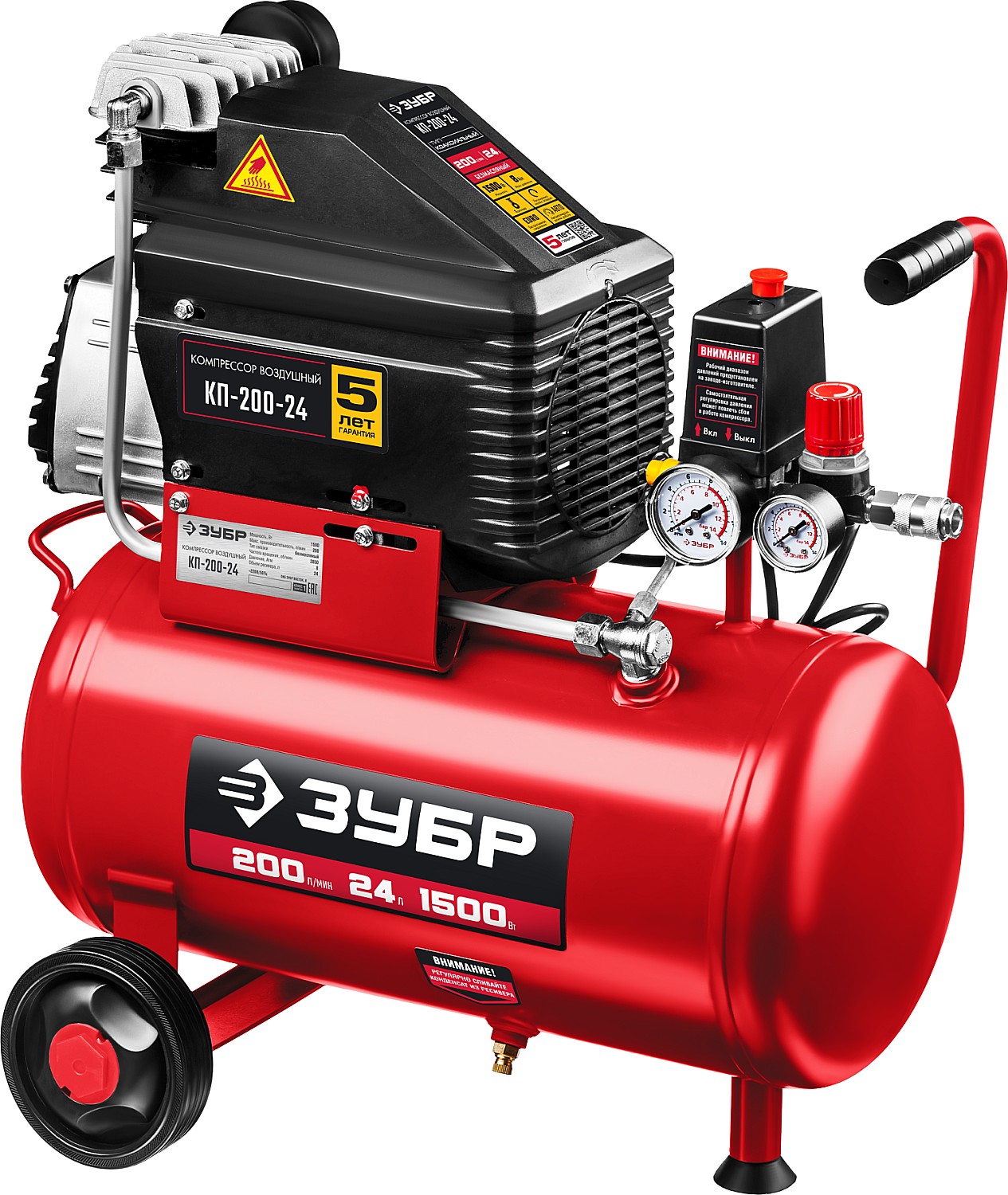Компрессор воздушный безмасляный, 200 л/мин, 24 л, 1500 Вт