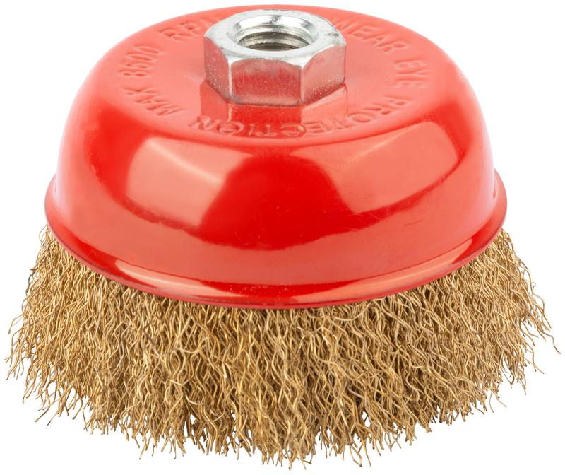 Корщетка чашечная гайка М14 стальная латунированная волнистая проволока 100мм КУРС 39038