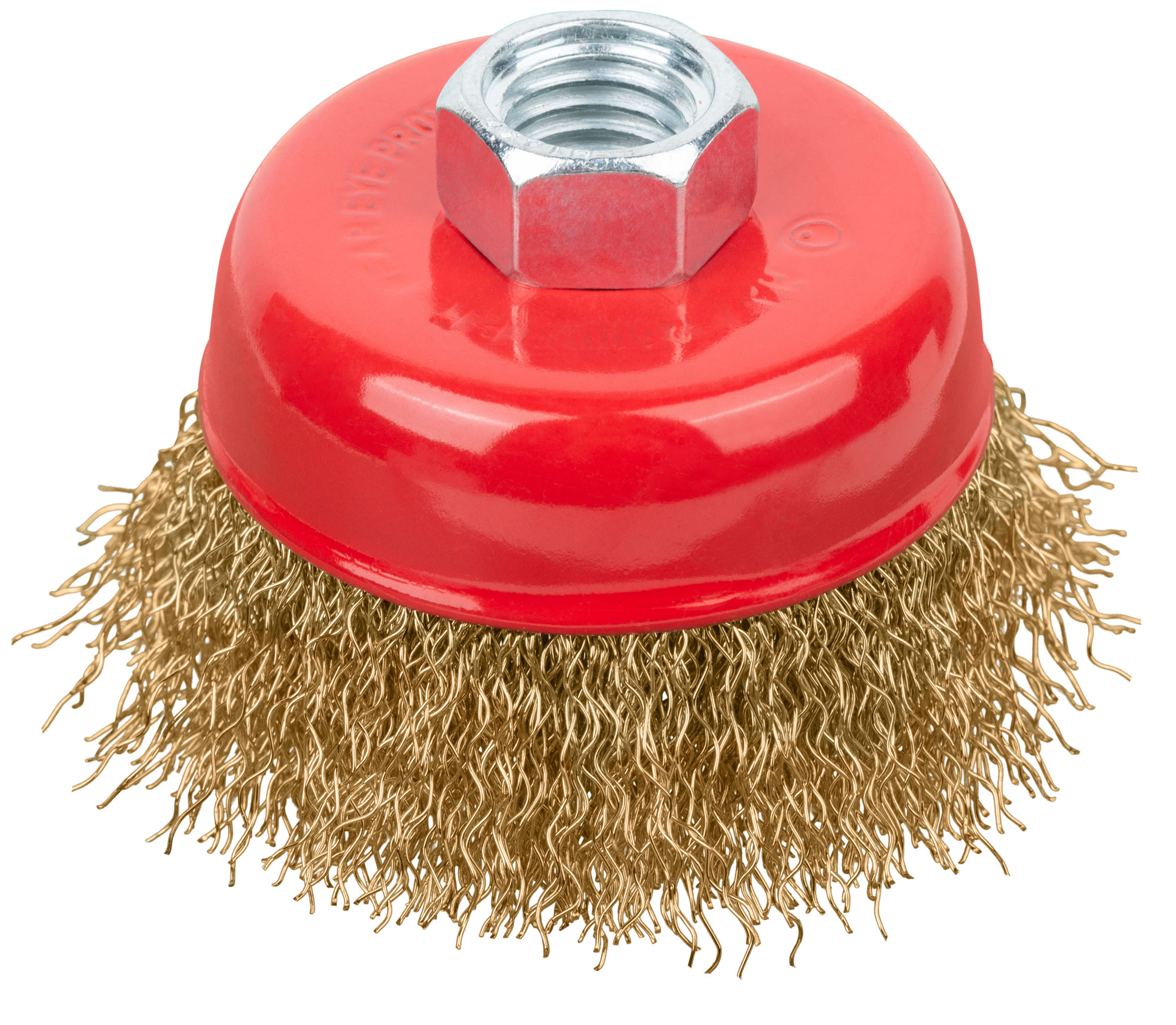 Корщетка-чашка, гайка М14, стальная латунированная волнистая проволока 65 мм