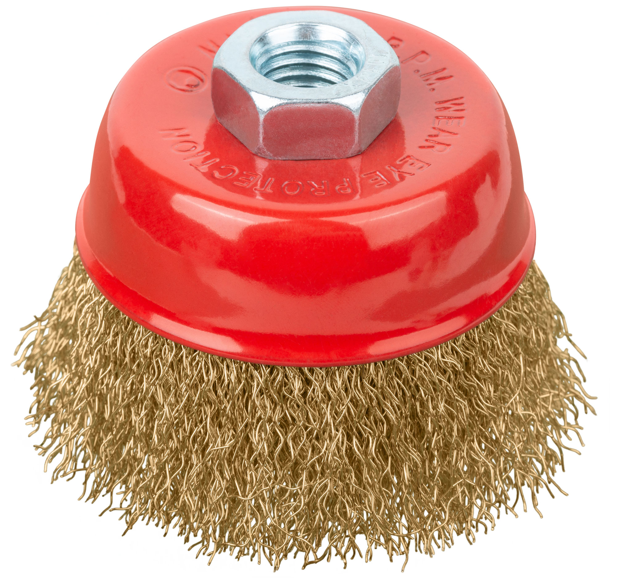 Корщетка-чашка, гайка М14, стальная латунированная волнистая проволока 75 мм