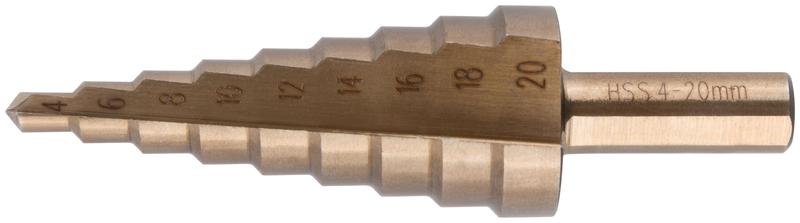 Сверло ступенчатое HSS Co5% (Р6М5К5) по металлу 9 ступеней 4-20мм FIT 36392