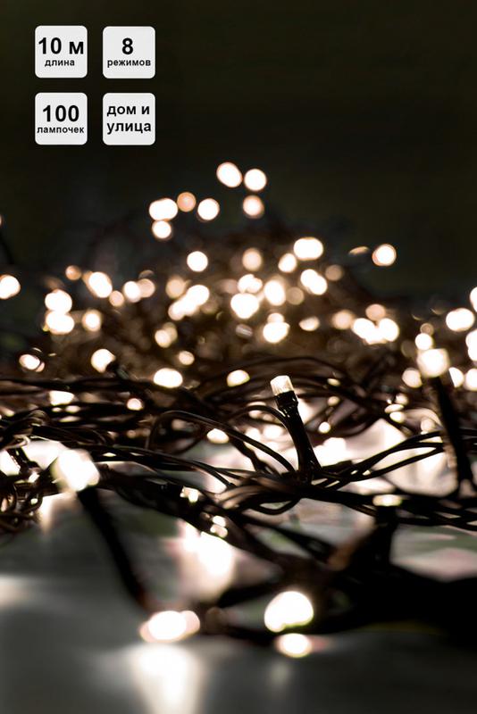 Гирлянда "Нить" LD100C-GWW 100LED тепл. бел. 10м 8 режимов IP44 SHLights 4690601052919