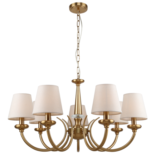 Ткань плафонов люстры Carissa является абажурной – прекрасно пропускает свет, не накапливает грязь и пыль, выглядит естественно и гармонизирует интерьер. Подвесные люстры Rivoli Carissa удачно подходят для организации основного освещения в гостиной, в просторной спальне, в загородном доме.