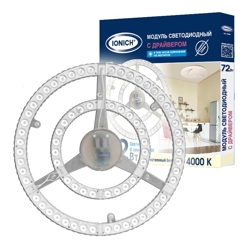 Модуль светодиодный высокой мощности для декоративных светильников 72Вт 7000лм 230В 4000К d320х25мм IP20 IONICH 2084