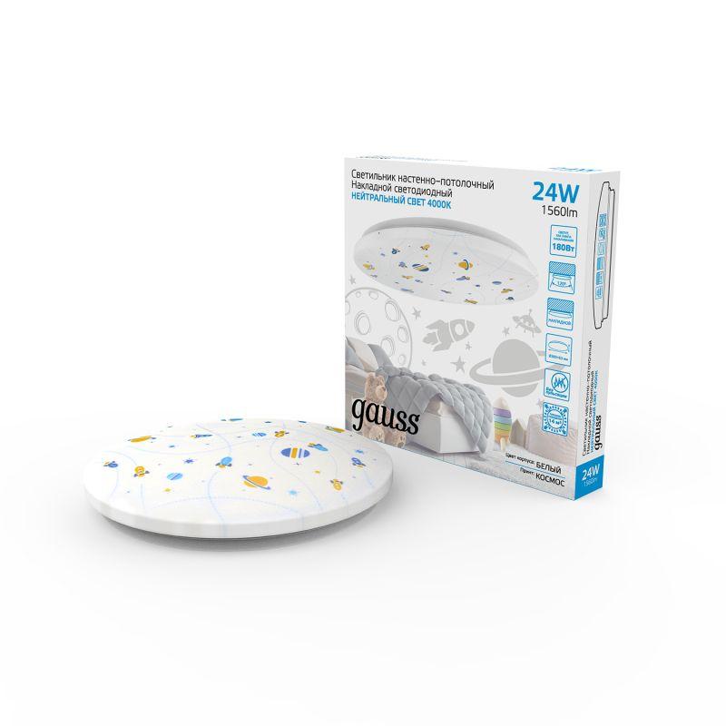 Светильник светодиодный 380х63 24Вт 4000К IP20 1560Лм круг (космос) настенно-потолочный накладной GAUSS 941411224R