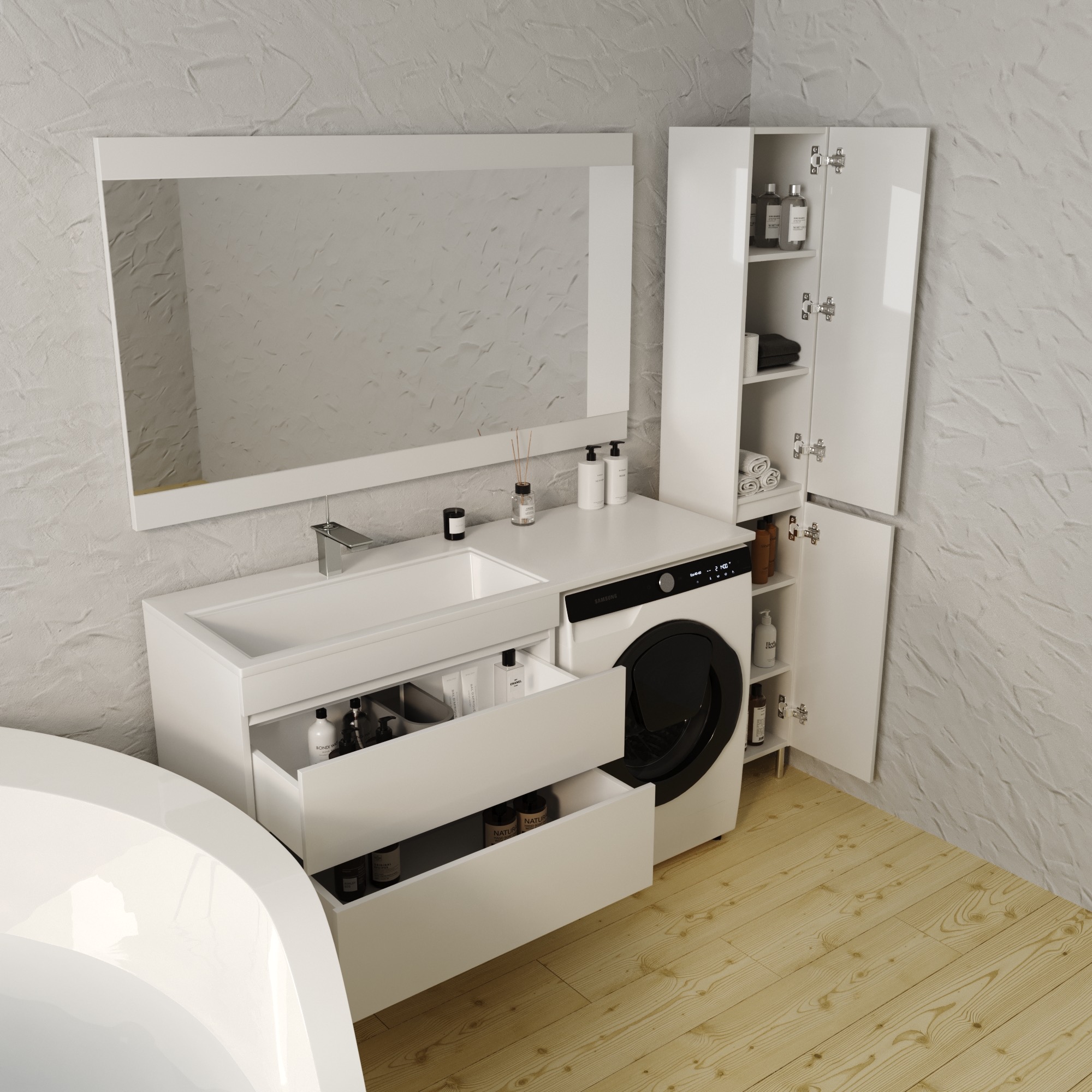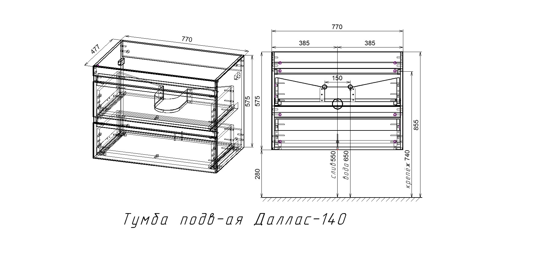 Тумба подвесная "Даллас 140", Люкс белая, PLUS, ЭМАЛЬ