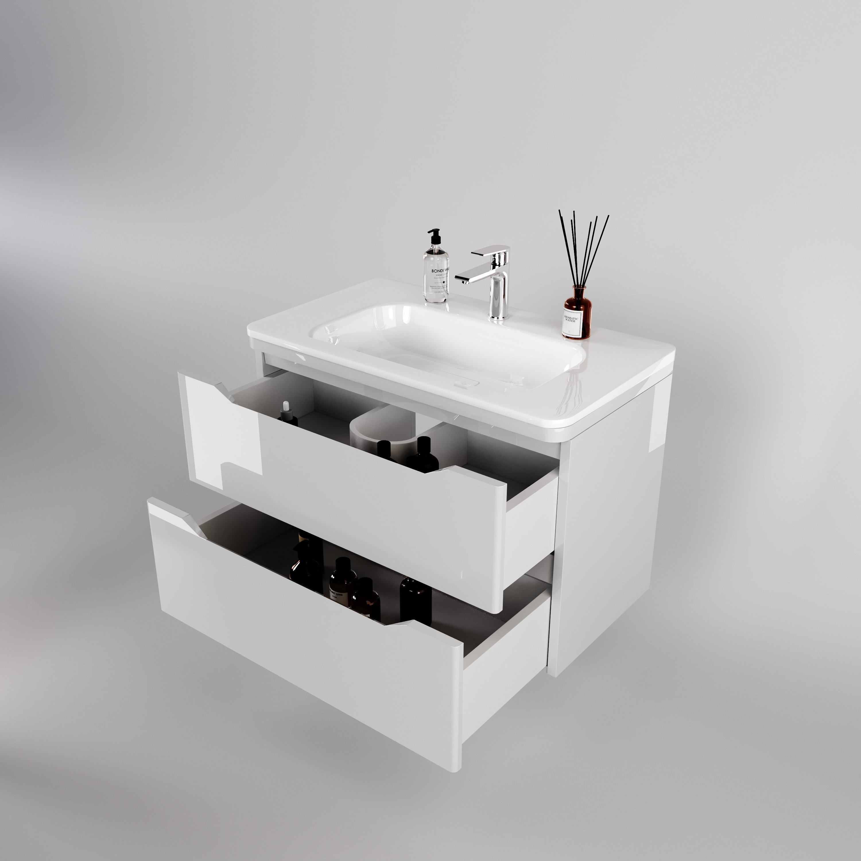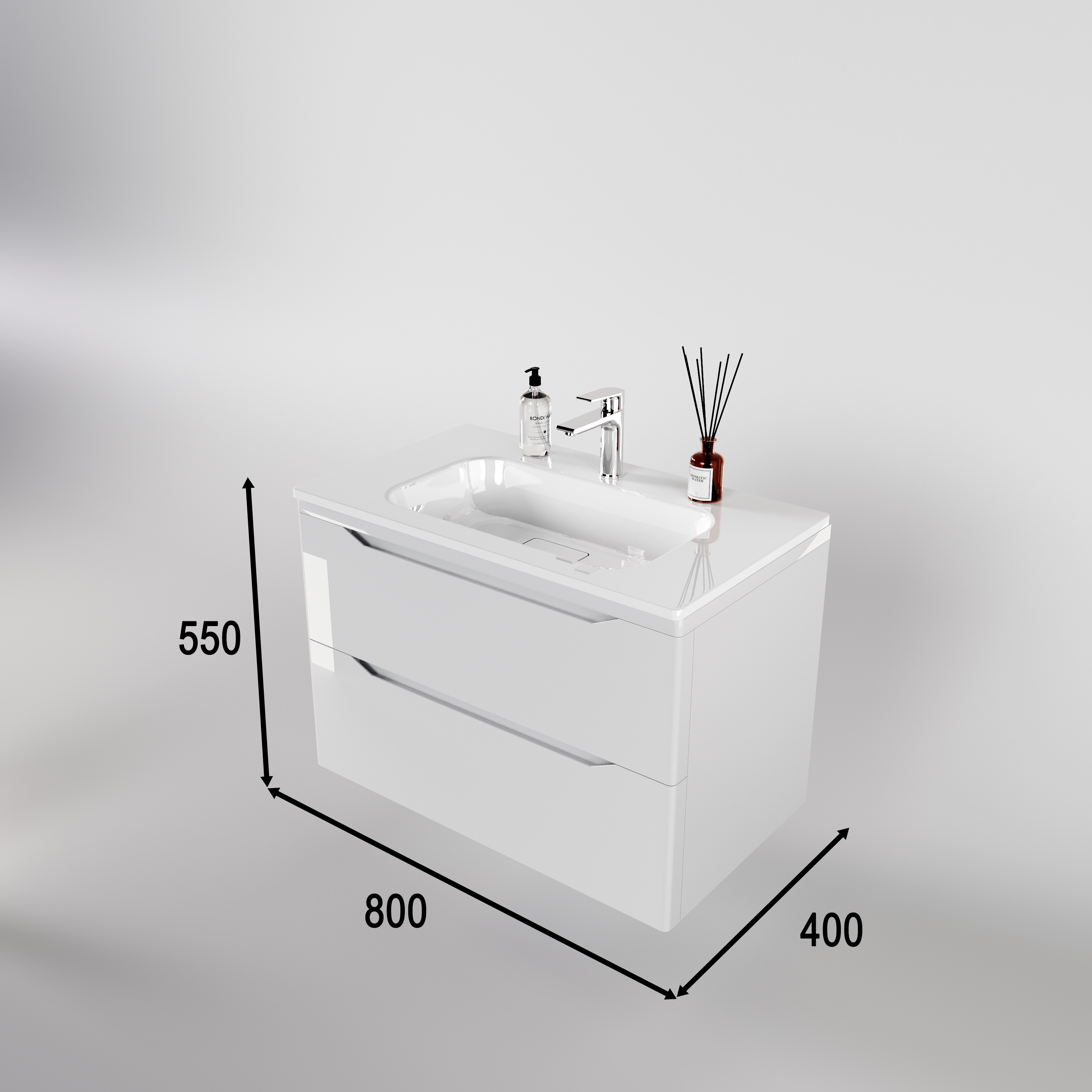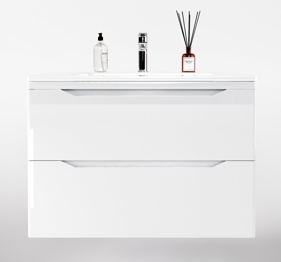 Тумба подвесная "Марелла 80" (2 ящ.) Люкс антискрейтч белый глянец, PLUS