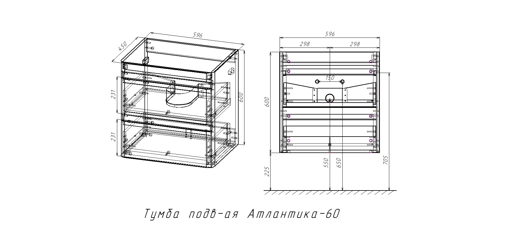 Тумба подвесная "Атлантика 60", Люкс ясень перламутр, PLUS