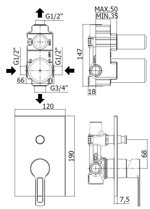Смеситель встраиваемый для душа на 2 выхода Paffoni RINGO RIN015NO/M встраиваемый на 2 выхода Черный матовый