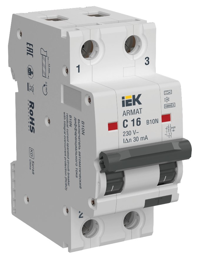 ARMAT Автоматический выключатель дифференциального тока B10N 2P C16 30мА тип A IEK