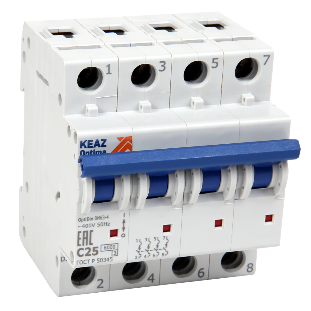 Выключатель автоматический четырехполюсный 3А D 6кА AC OptiDin BM63-4D3-УХЛ3
