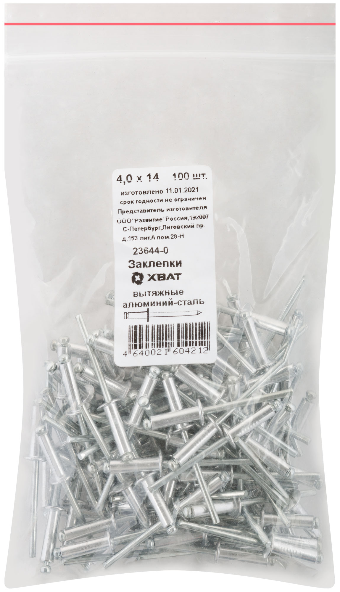 Заклепки вытяжные комбинированные, алюминий-сталь 4,0 х 14 100шт Фасовка