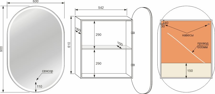 Зеркало-шкаф "Каре Арка 60*90" с подсветкой, сенсор на зеркале